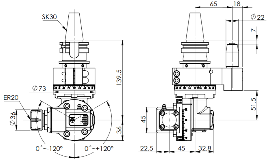 ◎ SK30-ER20 Light Angle Head-Universal (AHL Type)