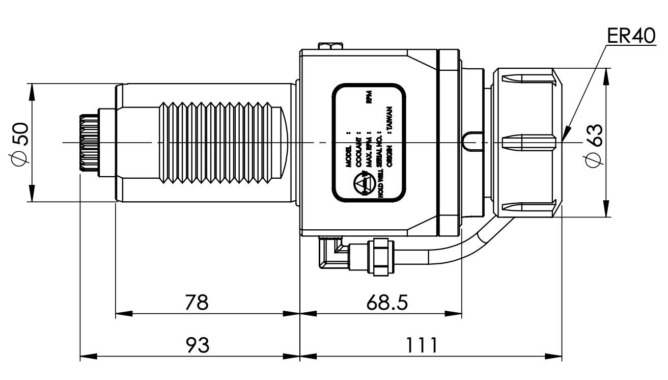 ◎ VDI50-5480-ER40 Axial Driven Tool Holder