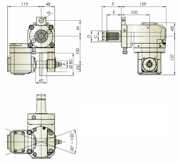 THB-T29.100-50D VDI50-MT 徑向擺動(dòng)滾齒動(dòng)力刀座