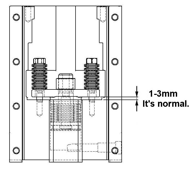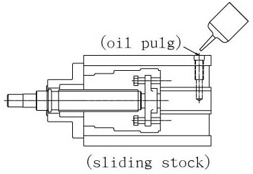 7. Keep a gap 2-4 mm and slant the sliding stock a little bit, then fill oil in.